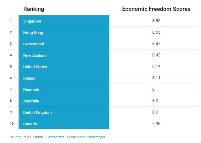 Top 10 các nền kinh tế tự do hàng đầu thế giới.