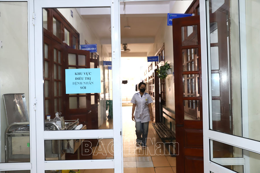 Hiện tại là thời điểm giao mùa, số bệnh nhi nhập viện vì các bệnh khác cũng khá đông. Vì vậy, để phòng việc lây chéo, Khoa Nhi tổng hợp đã bố trí khu vực cách ly chuyên điều trị bệnh nhân sởi và bệnh nhân được ưu tiên bố trí không phải nằm ghép; các bệnh nhân nghi mắc sởi trong khi chờ kết quả xét nghiệm cũng được ở khu vực riêng...
