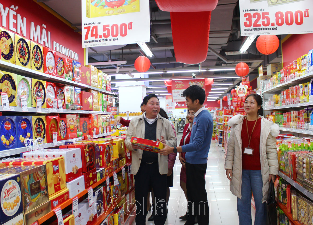 Đoàn công tác của Sở Công thương kiểm tra công tác bình ổn thị trường dịp Tết Nguyên đán Quý Mão năm 2023 tại siêu thị Vinmart, thành phố Phủ Lý.