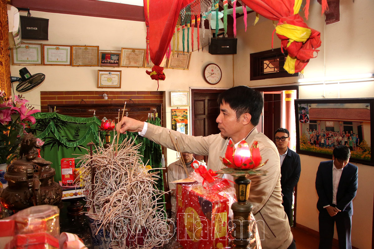 Thay mặt các cán bộ, nhân viên đơn vị, ông Nguyễn Văn Đoàn, Phó Giám đốc Sở KH&ĐT cùng cán bộ, nhân viên thắp hương tưởng nhớ hai liệt sỹ Vũ Văn Khương và Vũ Văn Hướng, là hai con trai của mẹ Vũ Thị Đam, hy sinh trong kháng chiến chống Mỹ cứu nước.