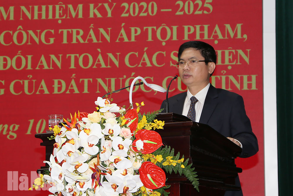 Sáng 22/10, Công an tỉnh tổ chức hội nghị sơ kết công tác đảm bảo an ninh trật tự (ANTT) Đại hội Đảng các cấp tỉnh Hà Nam nhiệm kỳ 2020 – 2025; tổng kết đợt cao điểm tấn công trấn áp tội phạm, đảm bảo ANTT, bảo vệ tuyệt đối an toàn các sự kiện chính trị, xã hội quan trọng của đất nước, của tỉnh. Đồng chí Trương Quốc Huy, Phó Bí thư Tỉnh ủy, Chủ tịch UBND tỉnh đã tới dự.