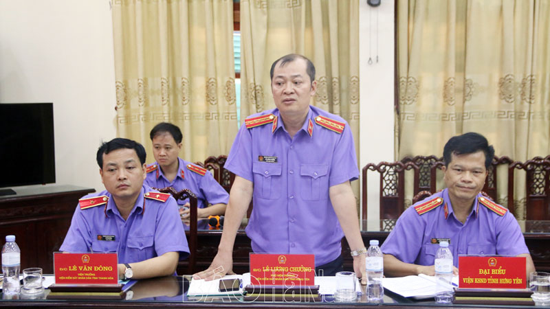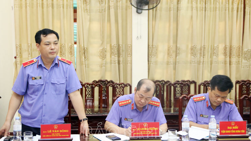Đại diện lãnh đạo Viện KSND tỉnh Thanh Hóa phát biểu ý kiến tại hội nghị.