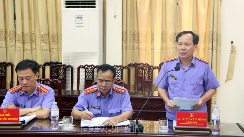 Đại diện Viện KSND tỉnh Hà Nam (đơn vị cụm phó) trình bày dự thảo báo cáo tại hội nghị.
