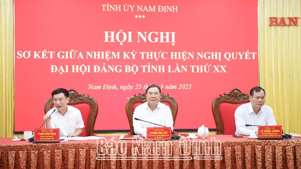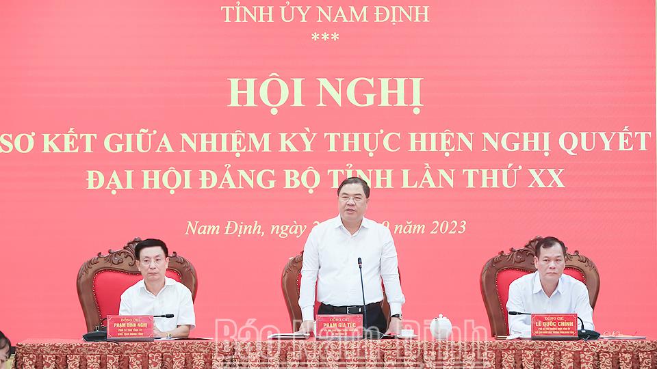 Phát biểu kết luận hội nghị, đồng chí Bí thư Tỉnh ủy Phạm Gia Túc khẳng định: trong nửa nhiệm kỳ qua, tập thể Thường trực, Ban Thường vụ, BCH Đảng bộ tỉnh đã luôn đoàn kết, thống nhất, quyết tâm, quyết liệt, tập trung lãnh đạo, chỉ đạo thực hiện toàn diện nhiệm vụ chính trị; đạt được nhiều kết quả quan trọng từ công tác xây dựng Đảng, xây dựng hệ thống chính trị, đến phát triển kinh tế - xã hội, bảo đảm quốc phòng, an ninh. Sự đoàn kết, thống nhất trong nội bộ Đảng, các cấp chính quyền, các tầng lớp nhân dân chính là động lực quan trọng vượt qua mọi khó khăn, thực hiện thắng lợi các chỉ tiêu Nghị quyết Đại hội Đảng các cấp. Đặc biệt, từ đầu nhiệm kỳ đến nay, tỉnh đã đăng cai tổ chức nhiều sự kiện lớn, trong đó có chuỗi hoạt động kỷ niệm 60 năm Ngày Bác Hồ về thăm Nam Định đã thực hiện trang trọng, ý nghĩa, được Trung ương và các tỉnh, thành phố trong cả nước, nhân dân trong tỉnh ghi nhận, đánh giá cao.
