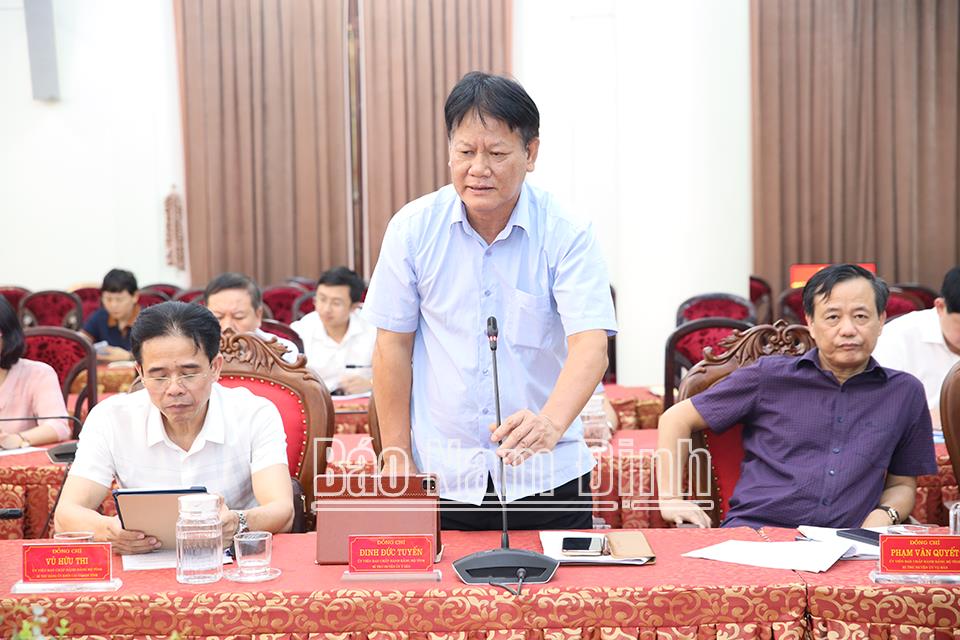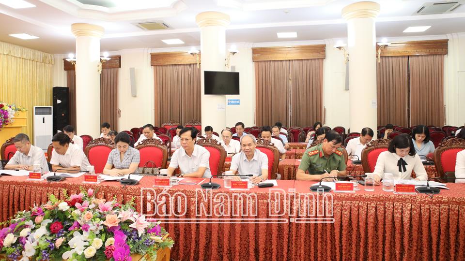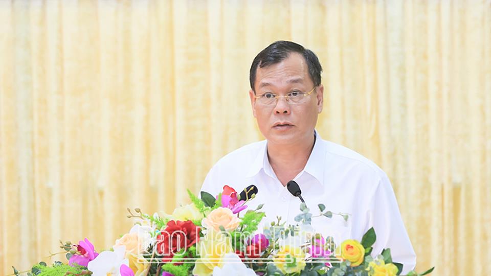Đồng chí Bí thư Tỉnh ủy nhấn mạnh nhiệm vụ trọng tâm thời gian tới, các cấp ủy, chính quyền và cả hệ thống chính trị tỉnh tiếp tục phát huy tinh thần đoàn kết; đổi mới phương thức lãnh đạo, thực hiện hiệu quả 3 khâu đột phá; phấn đấu hoàn thành và hoàn thành vượt mức các chỉ tiêu do Nghị quyết Đại hội Đảng bộ tỉnh khóa XX đề ra. Trước mắt tập trung thực hiện hiệu quả hơn về đổi mới, sắp xếp bộ máy của hệ thống chính trị tinh gọn, hoạt động hiệu lực, hiệu quả; tiến hành sáp nhập các xã, thị trấn; thực hiện các bước sáp nhập huyện Mỹ Lộc vào thành phố Nam Định. Nâng cao chất lượng công tác quy hoạch; quan tâm đầu tư kết cấu hạ tầng phục vụ nhu cầu phát triển. Đẩy mạnh cải cách hành chính, thu hút đầu tư phát triển kinh tế tương xứng với tiềm năng, lợi thế của tỉnh. Từng bước xây dựng, mở rộng các khu, cụm công nghiệp. Tăng cường thu hút đầu tư các dự án lớn, công nghệ cao, kinh tế xanh, sản phẩm thân thiện với môi trường. Tăng tốc trong chuyển đổi số, phát triển kinh tế số. Về sản xuất nông nghiệp, tiếp tục đẩy mạnh chuyển dịch cơ cấu, xây dựng doanh nghiệp nông nghiệp. Chú trọng phát triển văn hóa, xã hội; duy trì thành tích cao của ngành giáo dục, các lĩnh vực văn hóa, thể thao, du lịch; bảo đảm an ninh, quốc phòng của tỉnh.