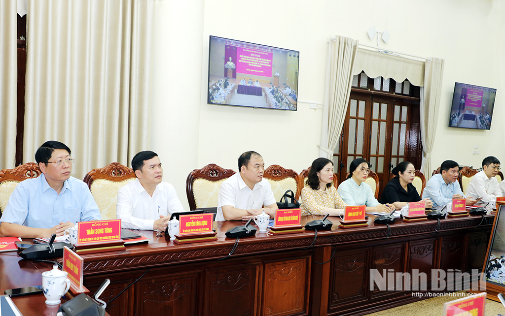 Quang cảnh hội nghị tại điểm cầu Tỉnh ủy Ninh Bình.