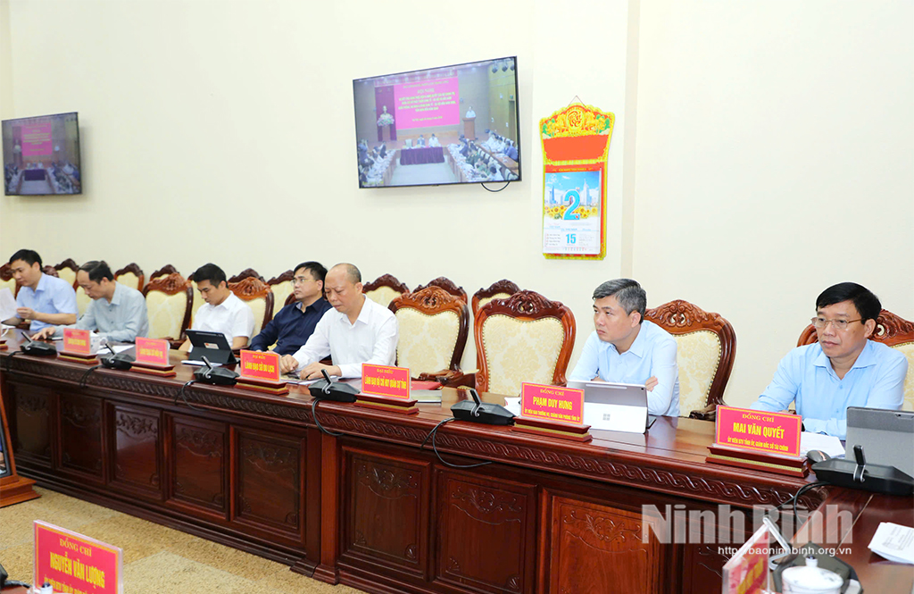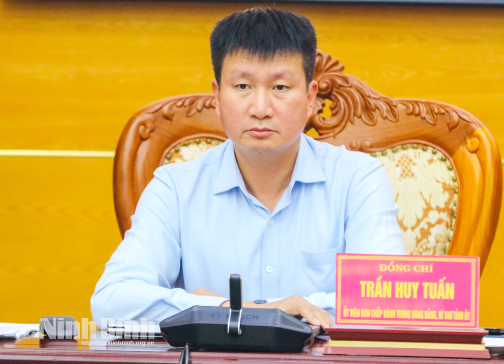 Tại điểm cầu Tỉnh ủy Ninh Bình, đồng chí Trần Huy Tuấn, Ủy viên Trung ương Đảng, Bí thư Tỉnh ủy dự và chủ trì hội nghị.
