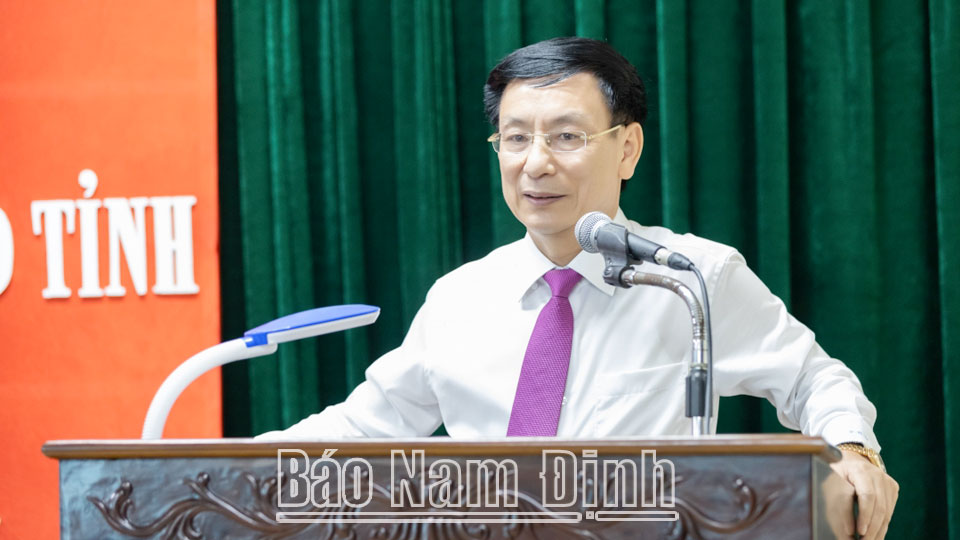 | Đồng chí Chủ tịch UBND tỉnh Phạm Đình Nghị phát biểu giao nhiệm vụ cho đồng chí Nguyễn Thị Thu Thủy, Giám đốc Sở LĐ - TB và XH. |