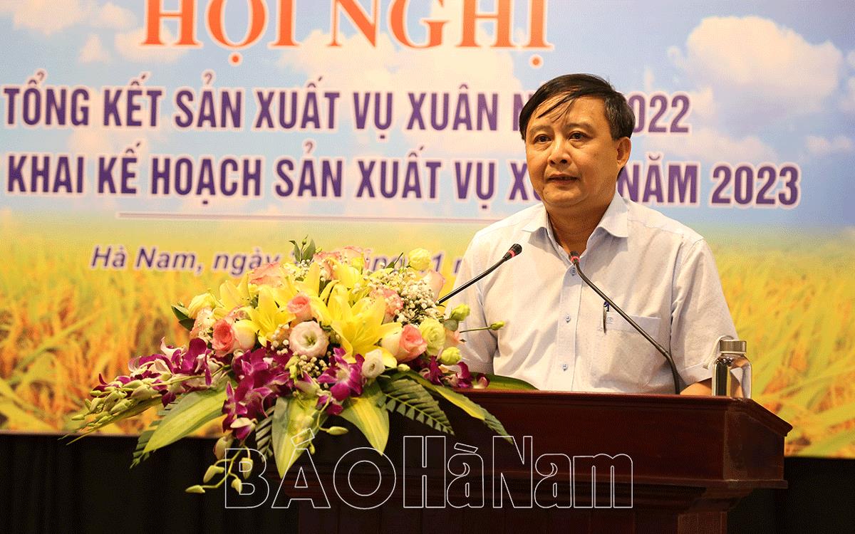 Phát biểu chỉ đạo tại hội nghị, đồng chí Nguyễn Đức Vượng, Tỉnh ủy viên, Phó Chủ tịch UBND tỉnh đánh giá cao kết quả đạt được trong sản xuất vụ xuân 2022. Đối với vụ Xuân 2023, đồng chí yêu cầu: Ngành nông nghiệp cần theo dõi chặt chẽ diễn biến thời tiết, tăng cường kiểm tra, hướng dẫn, đôn đốc các địa phương thực hiện tốt những nhiệm vụ sản xuất nông nghiệp; tiếp tục đẩy mạnh đưa cơ giới hóa trong các khâu sản xuất đạt hiệu quả; nhân rộng mô hình mạ khay, cấy máy, phun thuốc bảo vệ thực vật, phân bón lá bằng máy bay; nâng cao năng lực, hiệu quả hoạt động của các HTXDVNN, nhất là làm tốt các khâu dịch vụ thiết yếu, dịch vụ bao tiêu sản phẩm, chuyển giao khoa học, kỹ thuật mới trong sản xuất; triển khai có hiệu quả việc cấp, quản lý mã vùng trồng gắn với xây dựng nông thôn mới nâng cao, nông thôn mới kiểu mẫu.