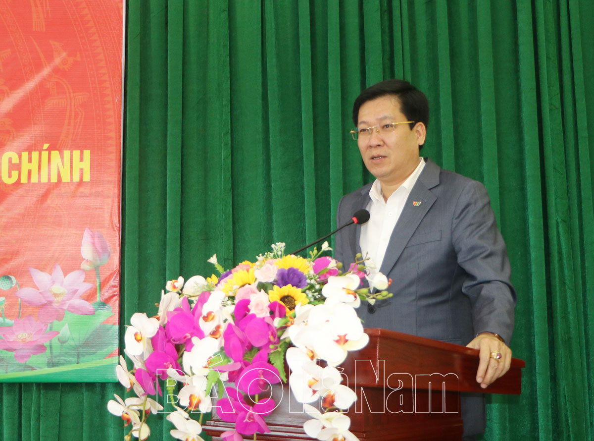 Đồng chí Lê Xuân Huy, TUV, Giám đốc Sở Nội vụ phát biểu tại buổi ký kết.