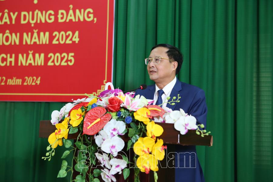 Phát biểu chỉ đạo tại hội nghị, đồng chí Phó Chủ tịch UBND tỉnh Nguyễn Đức Vượng biểu dương, đánh giá cao những cố gắng, nỗ lực và kết quả đạt được trong năm 2024 của ngành Tài nguyên và môi trường. Năm 2025, ngành cần tiếp tục thực hiện tốt công tác xây dựng Đảng, bám sát nhiệm vụ được giao… Trong đó, tập trung vào các nhiệm vụ trọng tâm: Phối hợp chặt chẽ với Sở Nông nghiệp và Phát triển nông thôn để xây dựng chức năng, nhiệm vụ khi sát nhập để bộ máy hoạt động hiệu lực, hiệu quả; tiếp tục tổ chức triển khai có hiệu quả các quy định của pháp luật, nhất là Luật Đất đai năm 2024 và các nghị định hướng dẫn; đẩy mạnh công tác quản lý nhà nước các lĩnh vực về đất đai, tài nguyên, khoáng sản, môi trường…; giải quyết quyết liệt vấn đề xử lý rác thải sinh hoạt nông thôn, môi trường các khu, cụm công nghiệp, môi trường vùng Tây Đáy; đẩy mạnh áp dụng công nghệ thông tin, chuyển đổi số trong hoạt động chuyên môn; tiếp tục thực hiện cải cách thủ tục hành chính…