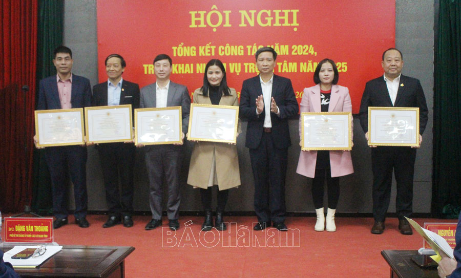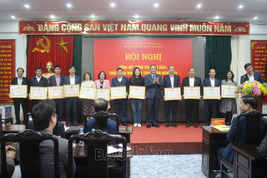 Tại hội nghị, có 38 tập thể, cá nhân được UBND tỉnh tặng Cờ, Bằng khen; 3 cá nhân được tặng danh hiệu Chiến sỹ thi đua tỉnh Hà Nam năm 2024; 31 cá nhân được nhận Kỷ niệm chương của Bộ VH,TT&DL; nhiều tập thể, cá nhân hoàn thành tốt nhiệm vụ công tác năm 2024 được Giám đốc Sở tặng Giấy khen.