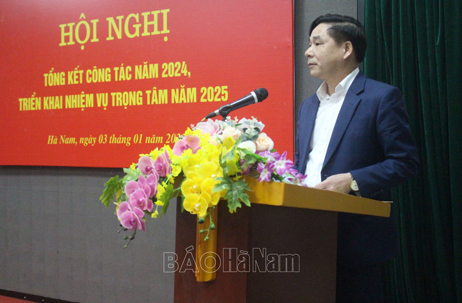 Phát biểu chỉ đạo tại hội nghị, đồng chí Phó Chủ tịch Thường trực UBND tỉnh Nguyễn Anh Chức ghi nhận và biểu dương những thành tích Sở VH,TT&DL đạt được trong năm 2024. Đồng chí đề nghị, năm 2025, Sở VH,TT&DL nhanh chóng ổn định tổ chức và bắt kịp nhanh công việc sau khi tiếp nhận một số tổ chức, bộ phận của các sở khác chuyển về. Đặc biệt là chuẩn bị thật tốt công tác tuyên truyền đại hội đảng bộ các cấp, tiến tới Đại hội Đảng bộ tỉnh Hà Nam lần thứ XXI nhiệm kỳ 2025-2030, Đại hội Đảng toàn quốc lần thứ XIV. Tích cực tham mưu UBND tỉnh trong công tác xây dựng hồ sơ khoa học đề nghị xếp hạng các di tích cấp tỉnh, cấp quốc gia, đề nghị ghi danh di sản văn hóa phi vật thể quốc gia, nhân loại trong thời gian tới, trọng tâm là việc lập hồ sơ khoa học đề nghị xếp hạng di tích quốc gia đặc biệt đối với Quần thể Di tích và danh thắng Tam Chúc. Nâng cao năng lực quản lý nhà nước các lĩnh vực thuộc phạm vi của ngành.