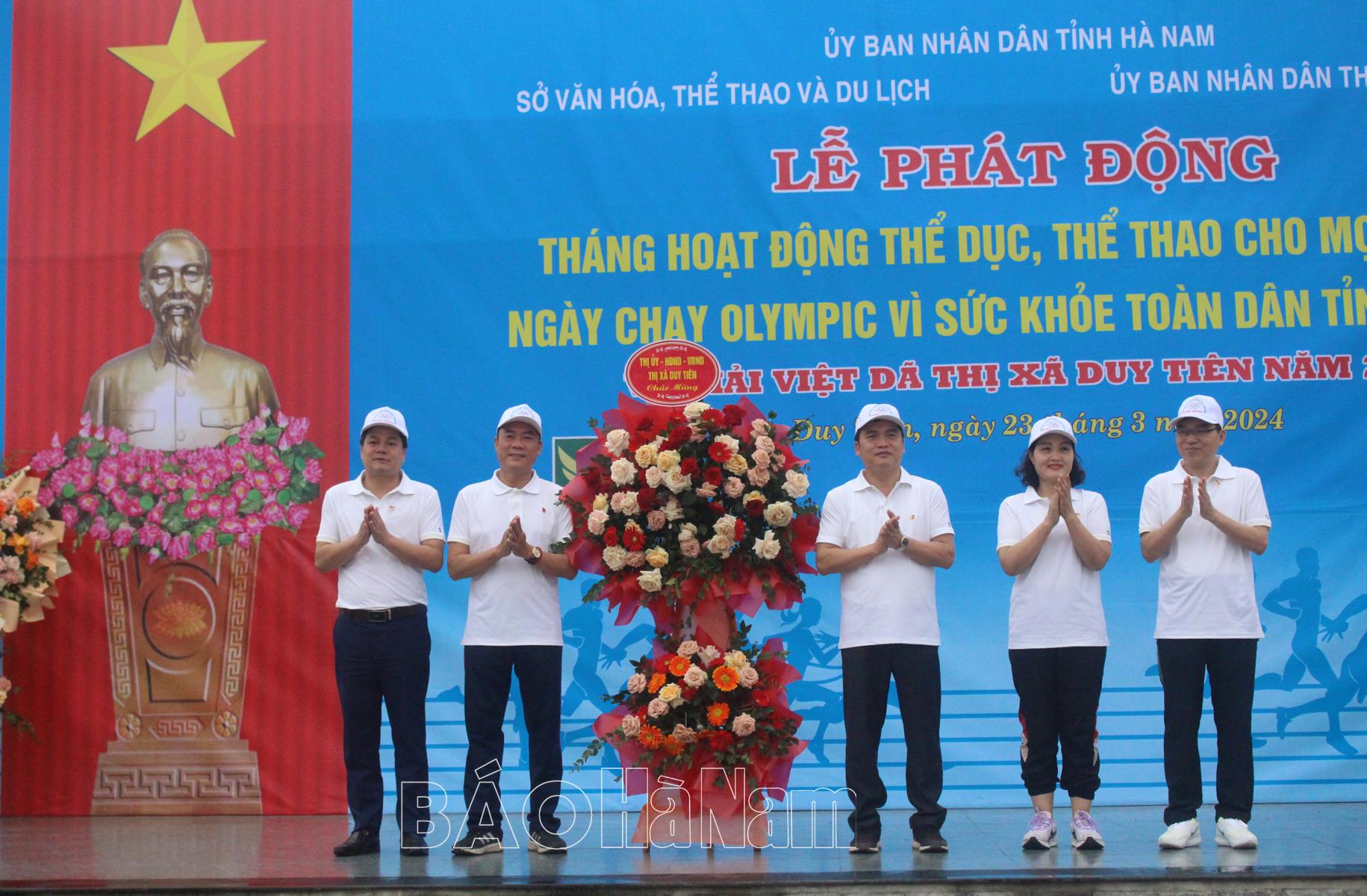 Tới dự lễ phát động và tham gia ngày chạy Olympic vì sức khỏe toàn dân có đại diện lãnh đạo Ban Tuyên giáo Tỉnh ủy, Sở VH,TT&DL, Ủy ban Olympic Việt Nam; các đồng chí lãnh đạo Thị ủy, UBND thị xã Duy Tiên; đại diện lãnh đạo các huyện, thành phố và gần 1.000 vận động viên tiêu biểu đến từ 22 đơn vị đại diện cho phong trào TDTT thị xã Duy Tiên. Tham gia ngày chạy Olympic vì sức khỏe toàn dân năm 2024 còn có các cầu thủ Câu lạc bộ Bóng đá nữ Phong Phú Hà Nam.