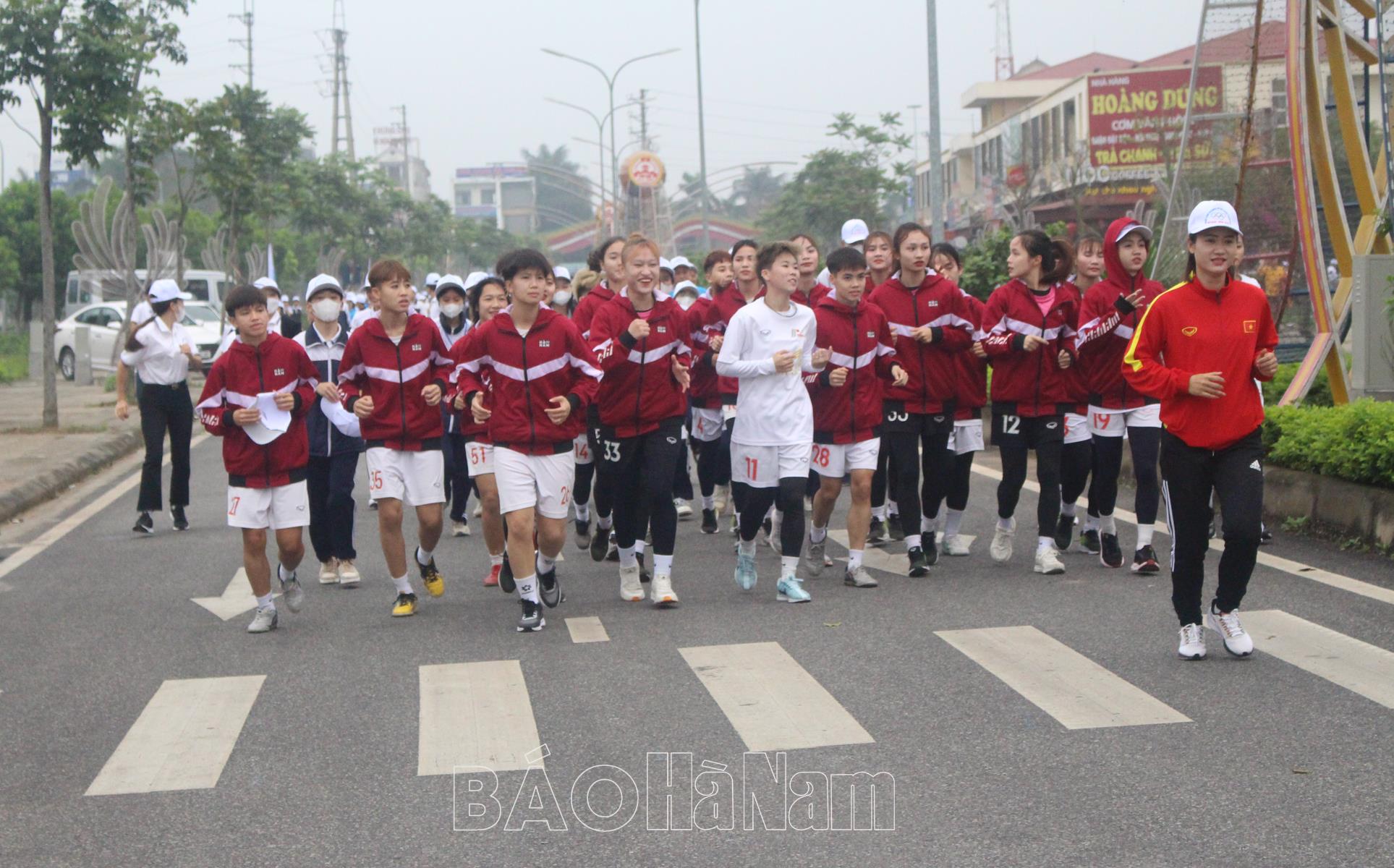 Các đại biểu tham gia ngày chạy Olympic 2024.Các VĐV tham gia ngày chạy Olympic 2024.Các cầu thủ CLB Bóng đá nữ Phong Phú Hà Nam tham gia ngày chạy Olympic 2024.