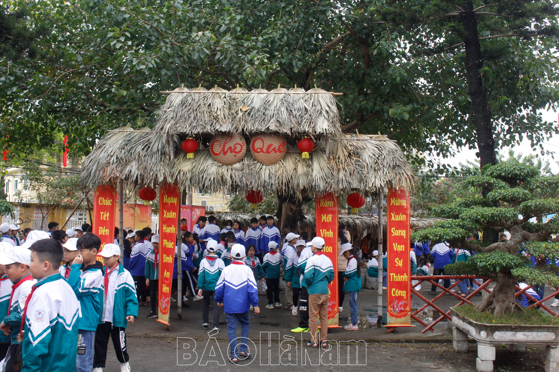 Không gian chợ quê thu hút đông đảo các em học sinh.