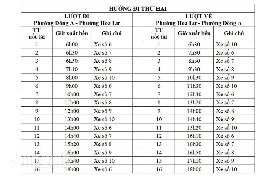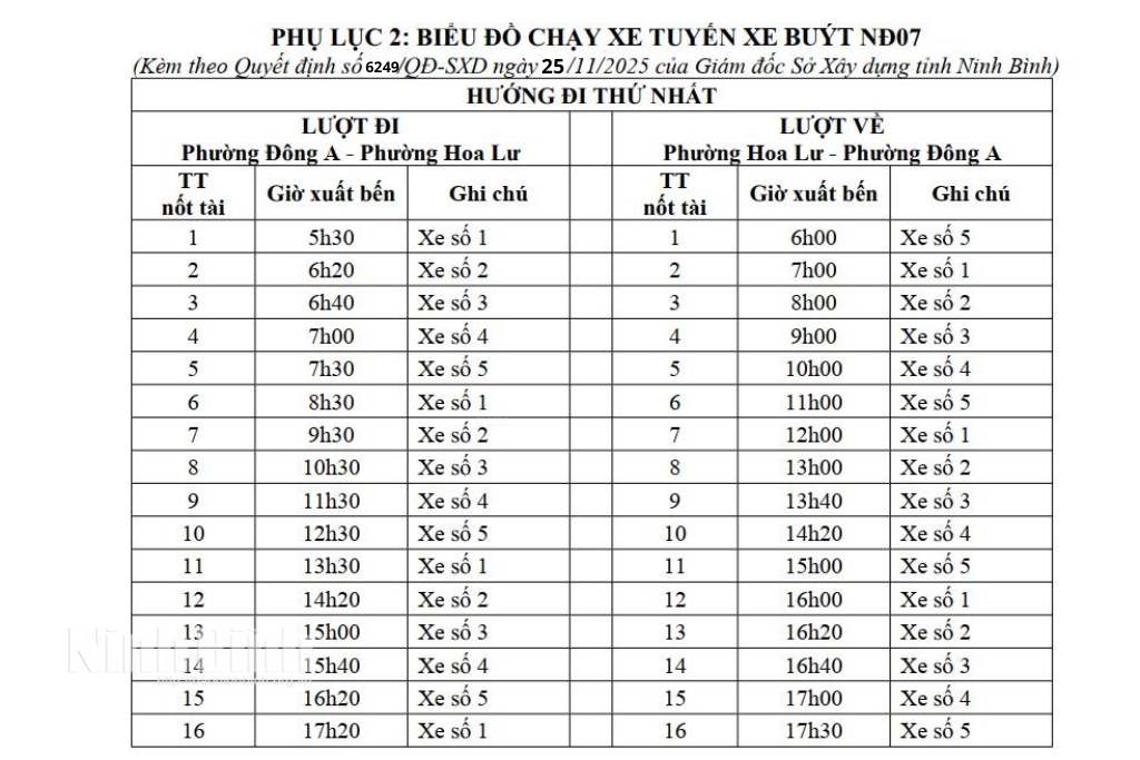 Sở Xây dựng Ninh Bình điều chỉnh biểu đồ và hành trình tuyến xe buýt NĐ07 từ ngày 1/12/2025
