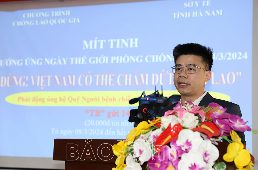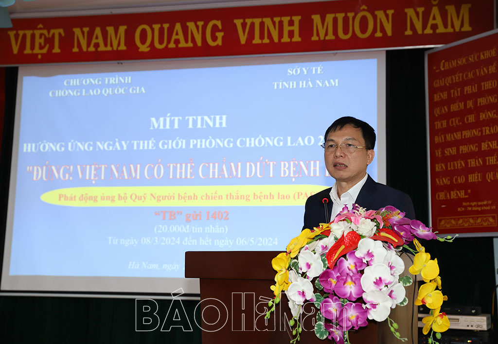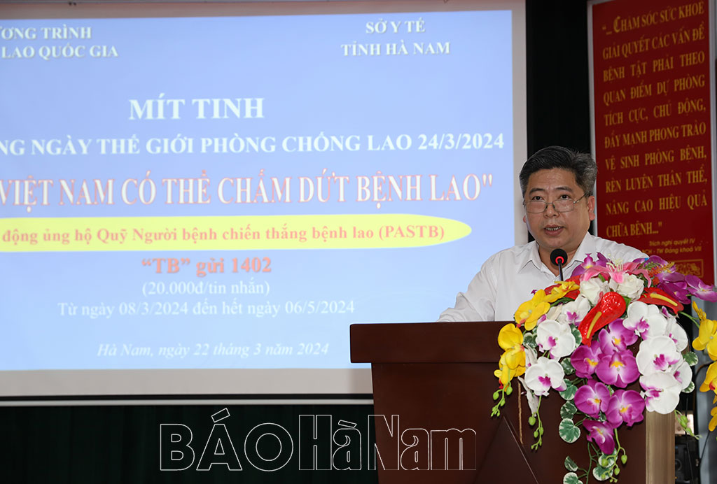 Phát biểu tại buổi lễ đại diện Bệnh viện Phổi Trung ương ghi nhận những kết quả đạt được của Hà Nam trong công tác phòng, chống bệnh lao. Đồng thời đề nghị Chương trình Chống lao tại tỉnh tiếp tục có những hoạt động tích cực, hiệu quả hơn nữa để góp phần cùng thế giới đẩy lùi căn bệnh truyền nhiễm đã tồn tại lâu đời và gây ảnh hưởng nghiêm trọng tới sức khoẻ, kinh tế, xã hội…