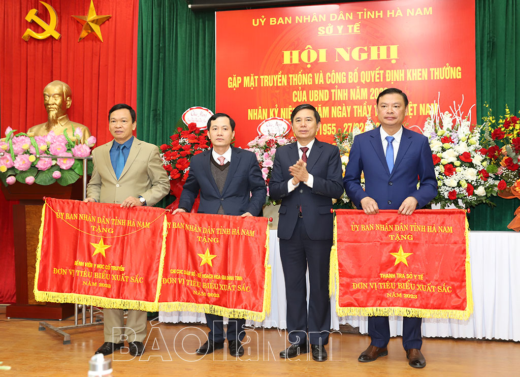 Tại Hội nghị, 3 tập thể gồm: Thanh tra Sở Y tế, Bệnh viện Y học cổ truyền tỉnh, Chi cục Dân số - Kế hoạch hóa Gia đình tỉnh được nhận Cờ thi đua của UBND tỉnh. 18 tập thể được UBND tỉnh trao Danh hiệu Tập thể lao động xuất sắc. 05 tập thể và 20 cá nhân được nhận Bằng khen của Chủ tịch UBND tỉnh vì có thành tích xuất sắc trong năm 2023.