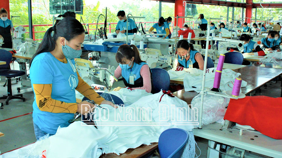 | Sản xuất sản phẩm xuất khẩu tại Công ty TNHH May Việt Thuận, Khu công nghiệp Hòa Xá (thành phố Nam Định). |