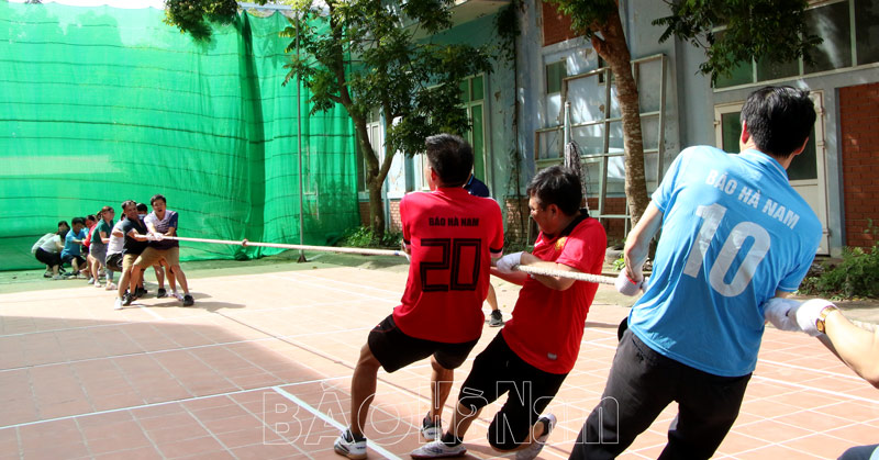 Gần 100% cán bộ lãnh đạo, phóng viên, kỹ thuật viên, nhân viên Báo Hà Nam đã tham gia giao lưu thi đấu các môn Bóng chuyền, kéo co với tinh thần đoàn kết, giao lưu và vui vẻ. Đây là dịp những người làm công tác báo chí tại Báo Hà Nam thể hiện tình cảm, niềm đam mê thể thao và trách nhiệm đối với phong trào thể dục thể thao của cơ quan.