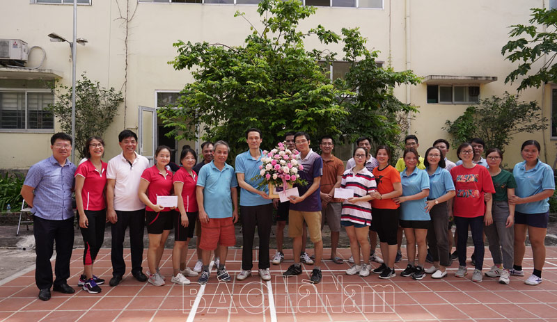 Cán bộ, phóng viên Báo Hà Nam giao lưu thể thao vui vẻ nhân ngày truyền thống Báo chí Cách mạng..Đồng chí Lê Hồng Kỳ, Tỉnh ủy viên, Tổng Biên tập Báo Hà Nam, Chủ tịch Hội Nhà báo tỉnh trao thưởng và tặng hoa cho các đội.