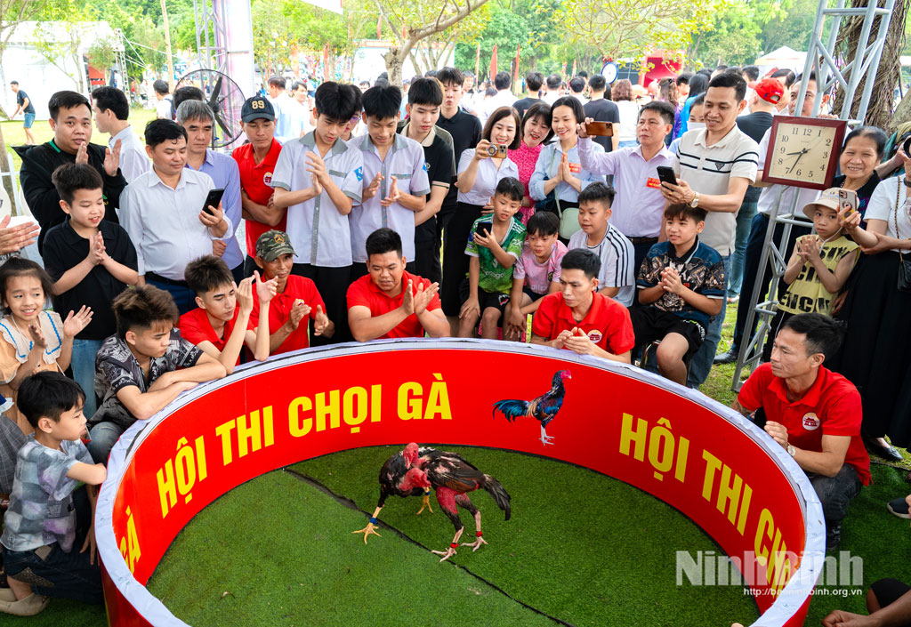Phần thi chọi gà thu hút đông đảo người dân và du khách. Ảnh Ngọc Linh