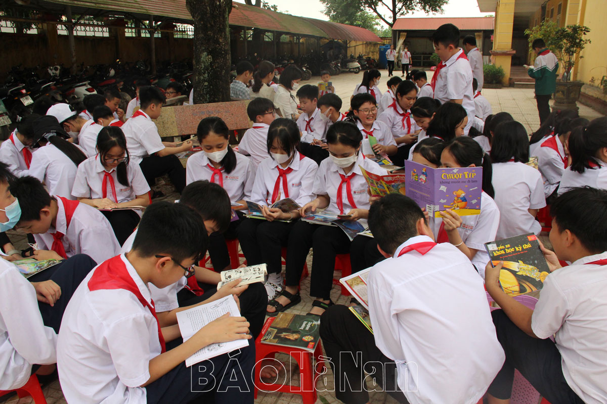 Thầy giáo Phan Tiến Dũng, Hiệu trưởng Trường THCS Nam Cao cho biết: Nhà trường luôn tích cực xây dựng và phát triển thư viện nhà trường, trang bị các tủ sách văn học, pháp luật, tủ sách nhà văn Nam Cao giúp cán bộ, học sinh có thêm nhiều hiểu biết ở các lĩnh vực. Phát động phong trào đọc sách, viết giới thiệu về những cuốn sách hay. Với những ngày có 4 tiết học nhà trường lại sắp xếp tiết đọc sách cho các em, tổ chức nhiều hoạt động giúp các em nâng cao tinh thần đọc sách. Đồng thời phối hợp với Thư viện tỉnh tổ chức các hoạt động nhằm giới thiệu cho các em những cuốn sách hay, phù hợp với lứa tuổi.