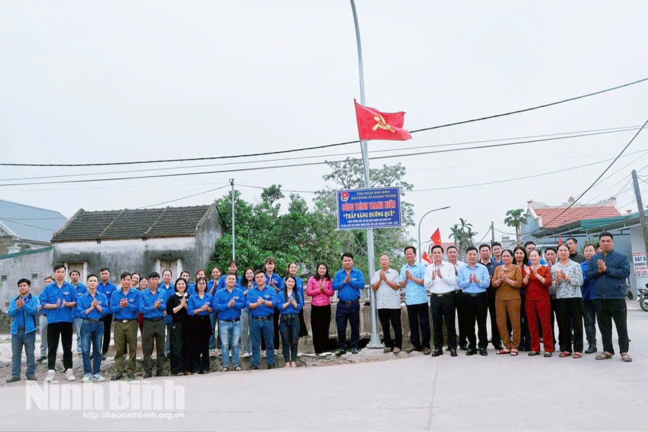 Bên cạnh các hoạt động phong trào sôi nổi tại các cấp bộ đoàn, Tháng Thanh niên 2026 trên địa bản tỉnh Ninh Bình còn ghi nhận nhiều công trình thanh niên mang tính lâu dài, thiết thực. Một trong những công trình tiêu biểu là tuyến “Thắp sáng đường quê” dài gần 1,3 km tại thôn 17 và 18, xã Khánh Trung, với 35 cột điện có đèn cao áp được lắp đặt. Công trình do Đoàn Thanh niên xã Khánh Trung kết hợp cùng các thôn, xóm phối hợp thực hiện với kinh phí trên 150 triệu đồng từ nguồn xã hội hóa.