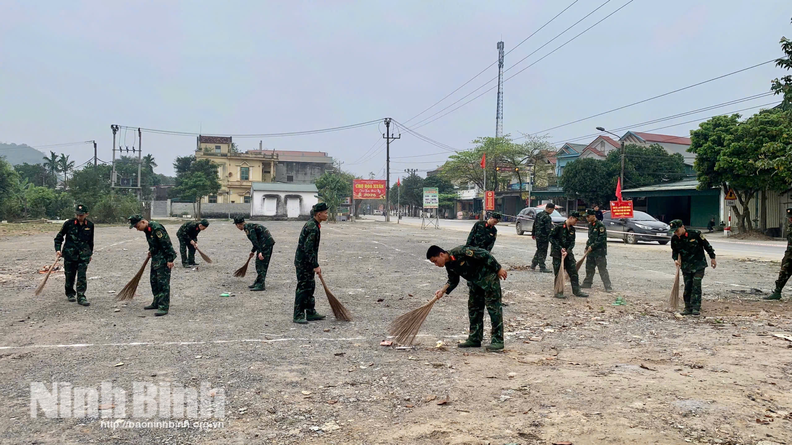 Đoàn viên thanh niên Tiểu đoàn 3, Trường Quân sự Quân đoàn 12 tổ chức ra quân dọn dẹp vệ sinh môi trường tại khu dân cư.
