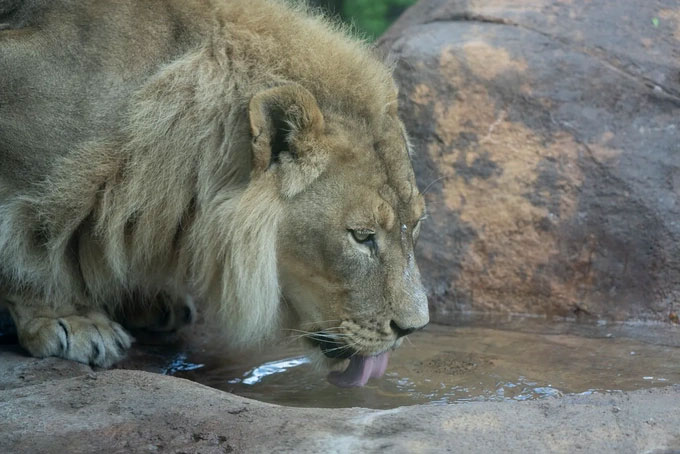 Sư tử cái mọc bờm ở Vườn thú Topeka ở Kansas, Mỹ (