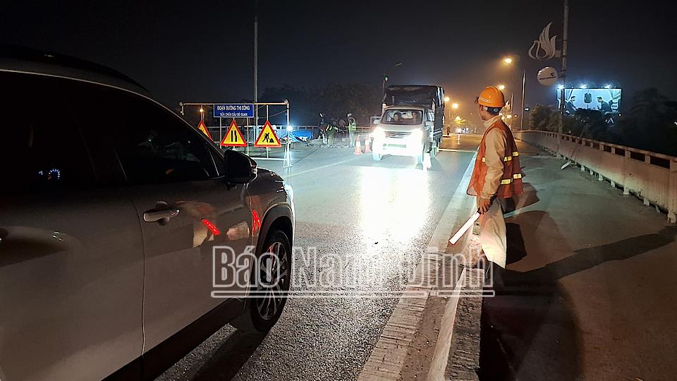 Để đảm bảo an toàn giao thông (ATGT) cho người và phương tiện, trong năm 2024 Sở Giao thông Vận tải đã đưa hạng mục “Sửa chữa khe co giãn, giá công tác và hệ thống ATGT cầu Đò Quan” vào kế hoạch bảo trì kết cấu hạ tầng giao thông, trình và được UBND tỉnh đã phê duyệt. Theo Quyết định số 1460/QĐ-UBND của UBND tỉnh, quy mô đầu tư của công trình gồm các hạng mục: sửa chữa, thay thế khe co giãn (thay thế, sửa chữa khe co giãn cũ bằng khe co giãn thép hình răng lược); sửa chữa giá công tác (bổ sung 2 lồng lên xuống giá công tác tại trụ T7 và T10); sơn lại vạch kẻ đường và cục chắn bánh phạm vi cầu… Công trình có tổng mức đầu tư 4,1 tỷ đồng; khởi công từ ngày 08/10/2024 và dự kiến hoàn thành trước ngày 15/12/2024. Theo báo cáo của Ban Quản lý bảo trì kết cấu hạ tầng giao thông Nam Định (Sở Giao thông Vận tải), đến ngày 2/12/2024 đã thi công được 10/12 khe co giãn và hoàn thiện hệ thống ATGT của công trình.