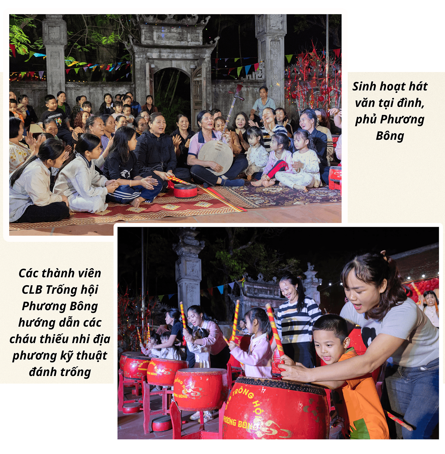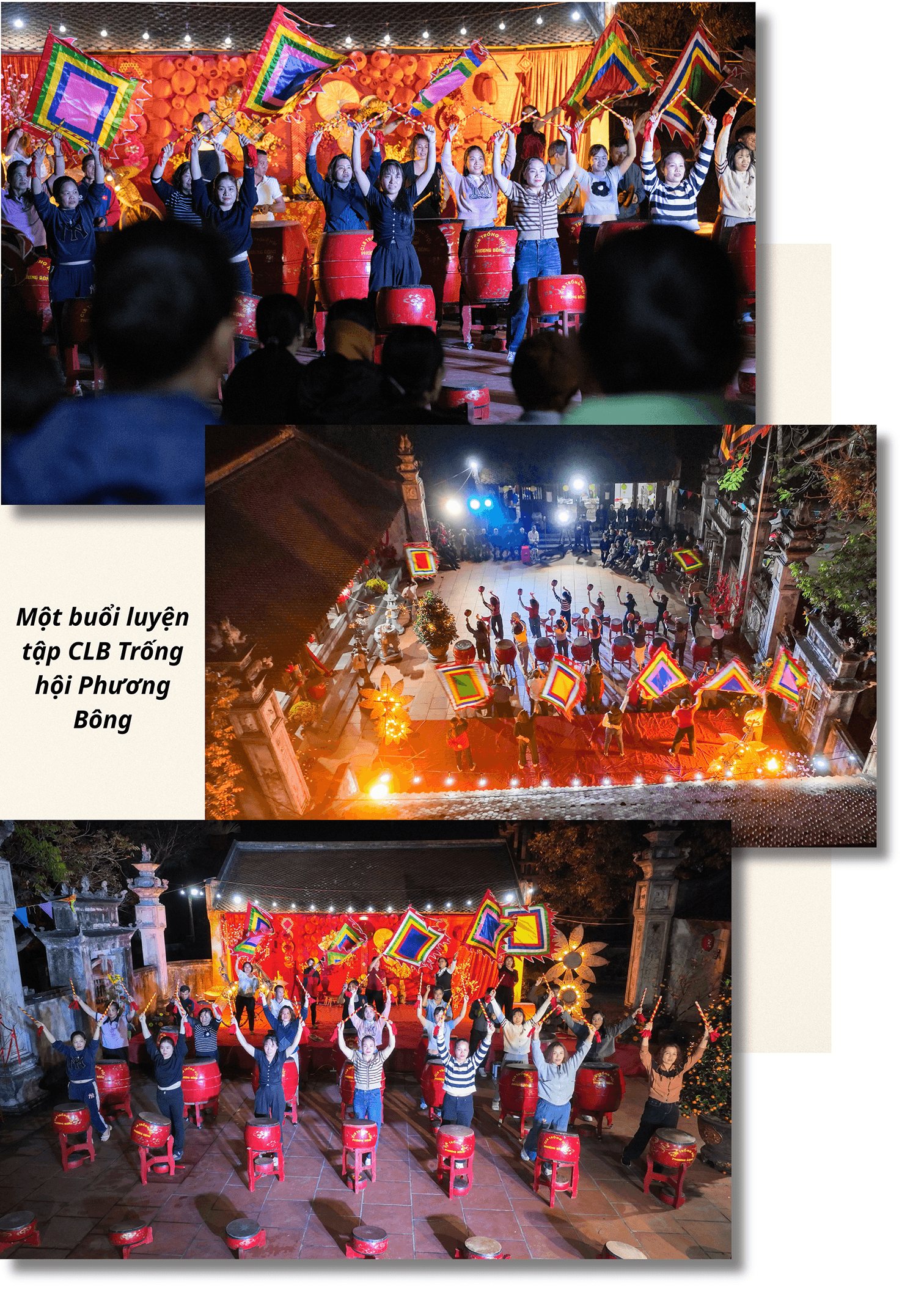 Tiếp nối khí phách cha ông, người dân Phương Bông còn khéo léo chuyển hóa mạch nguồn văn hóa cổ xưa thành những sinh hoạt mang hơi thở thời đại. Sân đình Phương Bông hiện nay rộn ràng sức sống mới thông qua hoạt động của Câu lạc bộ (CLB) Trống hội. CLB được thành lập tháng 8 năm 2024. Hiện nay có từ 70 đến 80 thành viên tham gia thường xuyên.