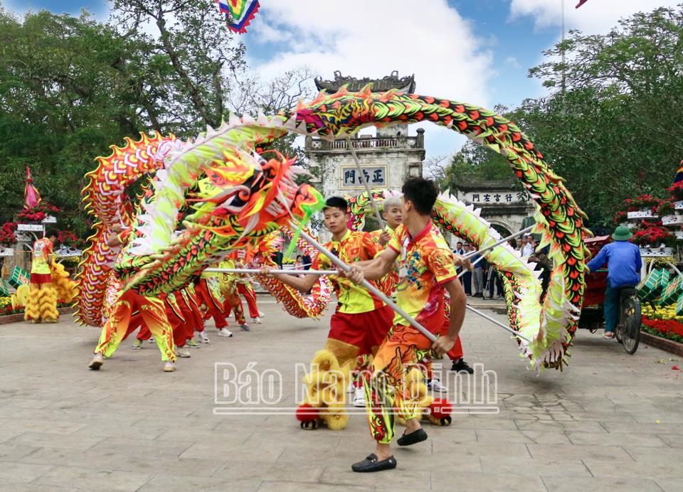 | Múa rồng trong Lễ hội Khai ấn Đền Trần, phường Lộc Vượng (TP Nam Định). |