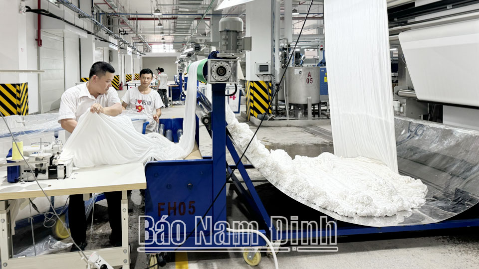 | Sản xuất vải tại Công ty TNHH Top Textiles, KCN Rạng Đông (Nghĩa Hưng). |