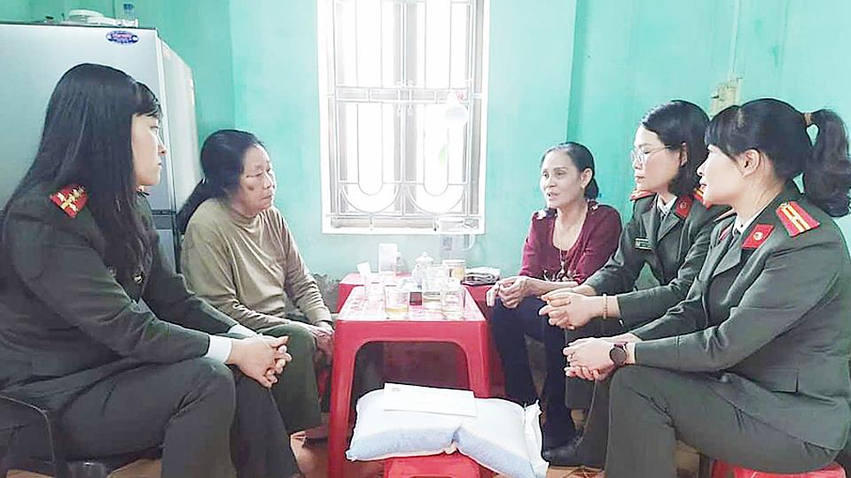 | Cán bộ, chiến sĩ Phòng Hồ sơ nghiệp vụ (Công an tỉnh) thăm hỏi, động viên đối tượng có hoàn cảnh khó khăn vươn lên trong cuộc sống. |