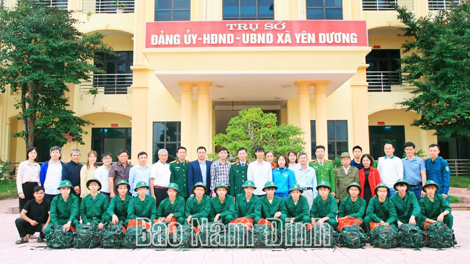 | Đảng ủy, HĐND, UBND xã Yên Dương tiễn thanh niên lên đường nhập ngũ năm 2024. |