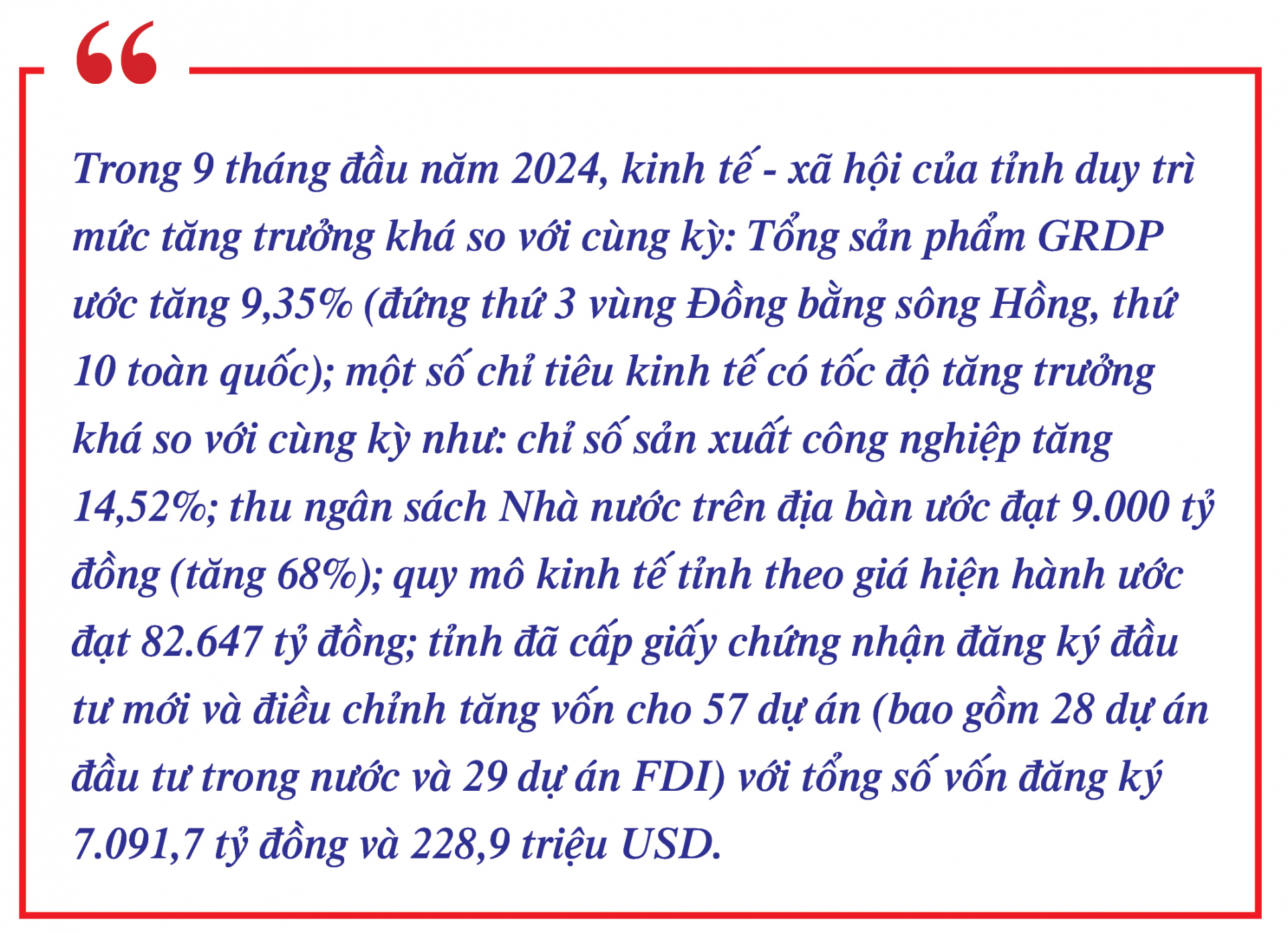 Với sự chỉ đạo sâu sát, quyết liệt của cấp ủy, chính quyền, sự vào cuộc của cả hệ thống chính trị từ tỉnh đến cơ sở và sự đồng thuận của nhân dân, nhiệm vụ sắp xếp, sáp nhập ĐVHC cấp huyện, cấp xã trên địa bàn tỉnh đã đạt kết quả tích cực, bảo đảm tiến độ đề ra. Hoạt động của chính quyền cấp xã ngày càng hiệu lực, hiệu quả. Khí thế thi đua thực hiện các phong trào ở các địa phương sôi nổi, thu hút đông đảo các tầng lớp nhân dân tham gia. Qua đó, góp phần tích cực phát triển kinh tế - xã hội trên địa bàn tỉnh. Năm 2023, Nam Định có bước bứt phá vượt bậc về kinh tế - xã hội: tổng sản phẩm GRDP tăng 10,19% (đứng thứ 3 vùng đồng bằng sông Hồng và thứ 6 toàn quốc); thu ngân sách Nhà nước đạt 10.452 tỷ đồng (hoàn thành trước 2 năm chỉ tiêu Nghị quyết Đại hội Đảng bộ tỉnh lần thứ XX đề ra); quy mô kinh tế cán mốc 100.000 tỷ đồng. Trong 9 tháng đầu năm 2024, kinh tế - xã hội của tỉnh duy trì mức tăng trưởng khá so với cùng kỳ: Tổng sản phẩm GRDP ước tăng 9,35% (đứng thứ 3 vùng Đồng bằng sông Hồng, thứ 10 toàn quốc); một số chỉ tiêu kinh tế có tốc độ tăng trưởng khá so với cùng kỳ như: chỉ số sản xuất công nghiệp tăng 14,52%; thu ngân sách Nhà nước trên địa bàn ước đạt 9.000 tỷ đồng (tăng 68%); quy mô kinh tế tỉnh theo giá hiện hành ước đạt 82.647 tỷ đồng; tỉnh đã cấp giấy chứng nhận đăng ký đầu tư mới và điều chỉnh tăng vốn cho 57 dự án (bao gồm 28 dự án đầu tư trong nước và 29 dự án FDI) với tổng số vốn đăng ký 7.091,7 tỷ đồng và 228,9 triệu USD. Theo đó, quy mô nền kinh tế được mở rộng, ước năm 2024 (so với năm 2020): tổng sản phẩm GRDP (giá hiện hành) gấp 1,5 lần; GRDP bình quân đầu người gấp 1,4 lần; thu ngân sách từ kinh tế gấp 2 lần.
