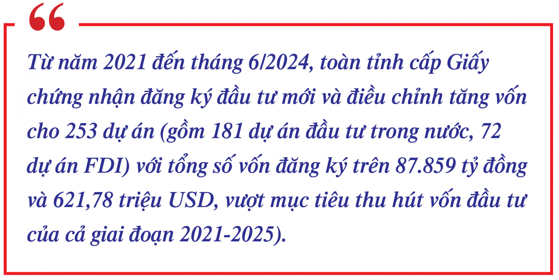 Với sự quyết liệt trong công tác lãnh đạo, chỉ đạo của cấp ủy, chính quyền các cấp và những chủ trương, quyết sách đúng đắn, không ngừng đổi mới trong cải thiện môi trường đầu tư kinh doanh cùng những cách làm hiệu quả, có chiều sâu, tỉnh Nam Định đã tạo được niềm tin, động lực cho các nhà đầu tư trong quá trình nghiên cứu đầu tư vào địa bàn. Ngày càng nhiều doanh nghiệp, đặc biệt là các tập đoàn, doanh nghiệp quy mô lớn, vị thế toàn cầu yên tâm lựa chọn Nam Định làm địa điểm đầu tư phát triển lâu dài. Qua đó, góp phần nâng cao vị thế của Nam Định trên bản đồ thu hút đầu tư của cả nước. Từ năm 2021 đến tháng 6/2024, toàn tỉnh cấp Giấy chứng nhận đăng ký đầu tư mới và điều chỉnh tăng vốn cho 253 dự án (gồm 181 dự án đầu tư trong nước, 72 dự án FDI) với tổng số vốn đăng ký trên 87.859 tỷ đồng và 621,78 triệu USD, vượt mục tiêu thu hút vốn đầu tư của cả giai đoạn 2021-2025). Nhiều Dự án đầu tư lớn, công nghệ cao, tạo sức bật phát triển kinh tế - xã hội, như: Dự án sản xuất máy tính của Tập đoàn Quanta (Đài Loan, Trung Quốc), tại Khu công nghiệp (KCN) Mỹ Thuận, với tổng mức đầu tư 120 triệu USD; Dự án Nhà máy dệt nhuộm Top Textiles của Tập đoàn Toray (Nhật Bản) tại KCN Dệt may Rạng Đông (Nghĩa Hưng), với tổng mức đầu tư hơn 203 triệu USD; Dự án của Tập đoàn JiaWei (Đài Loan, Trung Quốc) và các doanh nghiệp phụ trợ, với tổng mức đầu tư 100 triệu USD, tại KCN Mỹ Thuận…