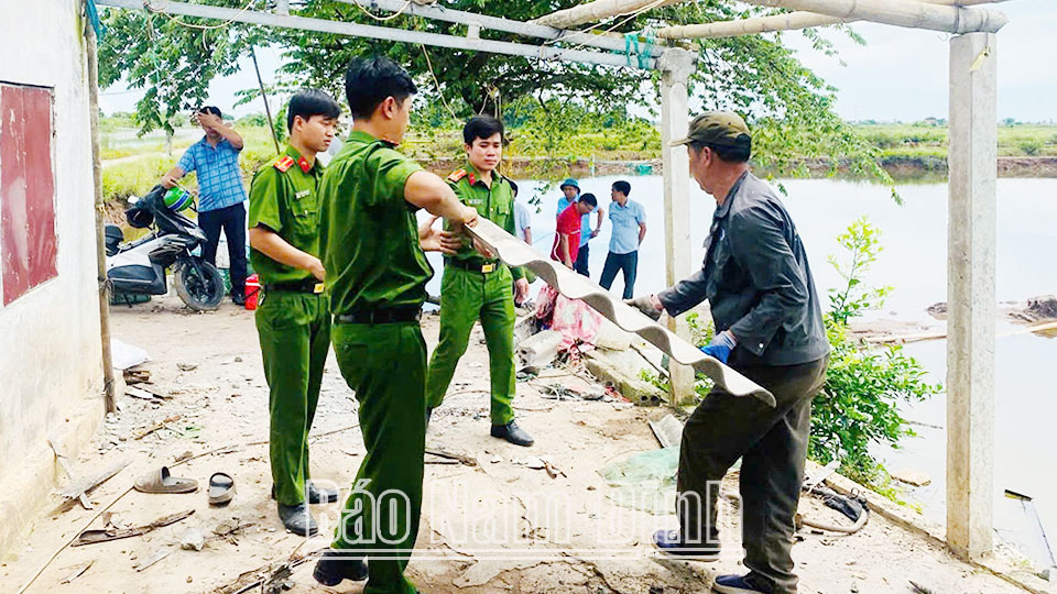 | Lực lượng Công an hỗ trợ người dân khu vực Cồn Xanh (Nghĩa Hưng) tháo dỡ, di chuyển lán trại để bàn giao mặt bằng phục vụ thi công các dự án của Tập đoàn Xuân Thiện. |