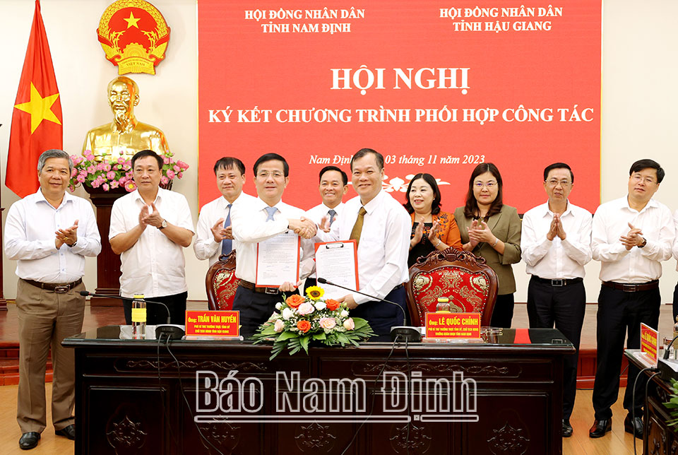 | HĐND tỉnh Nam Định và HĐND tỉnh Hậu Giang ký kết chương trình phối hợp công tác. |