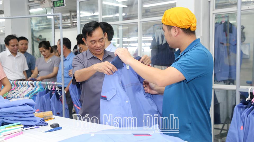 | Đồng chí Nguyễn Phùng Hoan, Ủy viên Ban TVTU, Phó Chủ tịch Thường trực HĐND tỉnh khảo sát việc quản lý, sử dụng đất trong các dự án đầu tư sản xuất kinh doanh ngoài khu, cụm công nghiệp tại dự án xây dựng xưởng kinh doanh may mặc, xã Hồng Quang (Ý Yên). Ảnh Văn Trọng |