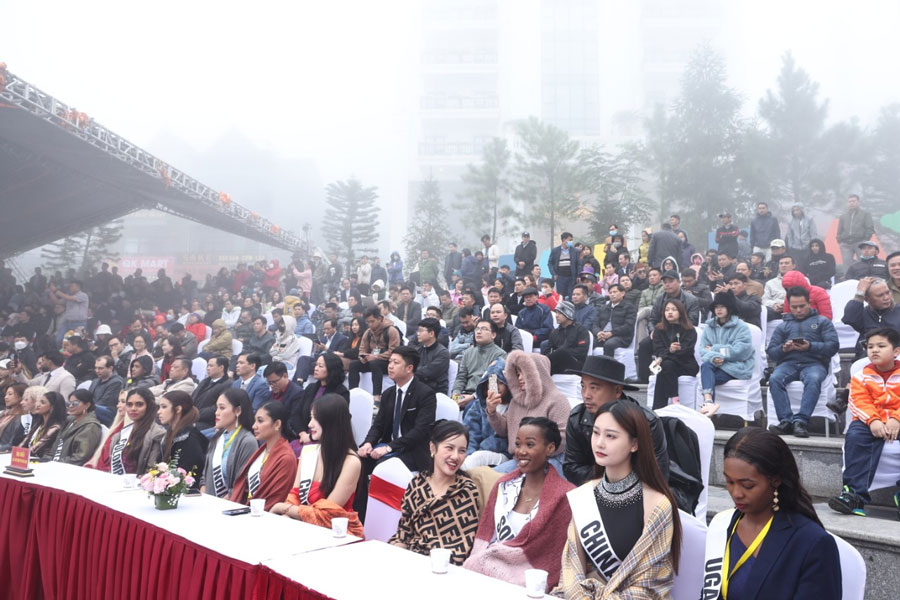 Các thí sinh dự thi Hoa hậu du lịch thế giới 2022 tham dự buổi lễ.