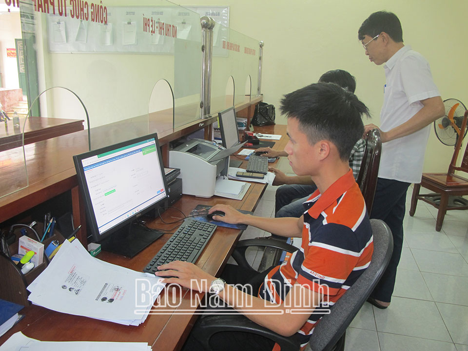 | Cán bộ xã Liên Minh (Vụ Bản) cập nhật thông tin và theo dõi hoạt động trên Trang thông tin điện tử của xã. |
