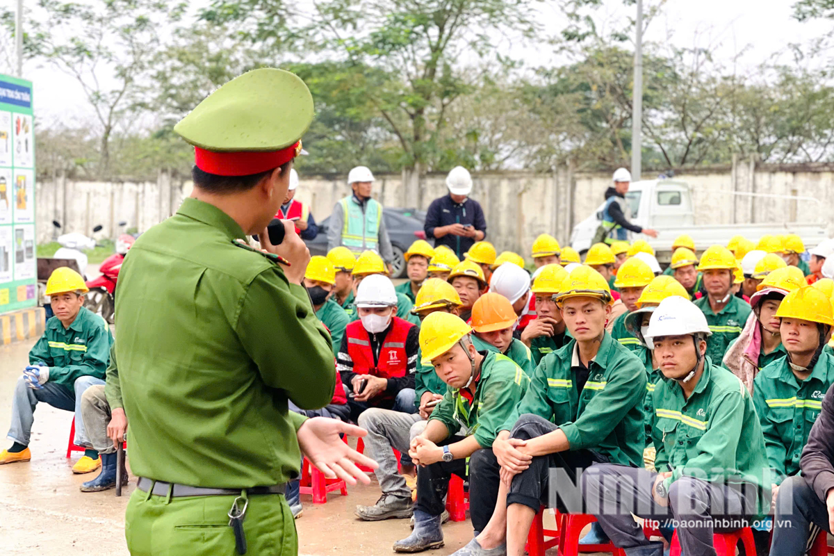 Cùng với đó, Công an phường Hà Nam cũng tuyên truyền các quy định về phòng cháy, chữa cháy (PCCC); hướng dẫn kỹ năng xử lý tình huống khi xảy ra cháy nổ tại khu vực thi công - nơi có nhiều vật liệu dễ cháy, nguồn nhiệt và thiết bị điện. Công nhân được lưu ý về việc tuân thủ nội quy PCCC, hướng dẫn sử dụng thiết bị an toàn, kiểm tra hệ thống điện và thực hiện sơ tán theo hướng dẫn khi có sự cố.