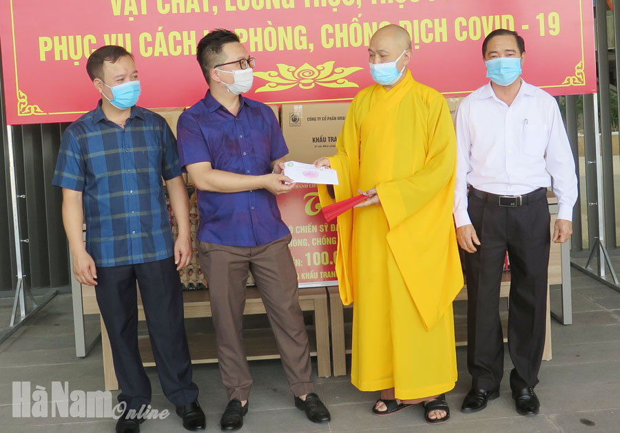 Chiều 19/5, Giáo hội Phật giáo Việt Nam huyện Thanh Liêm do Thượng tọa Thích Thanh Viên, Phó trưởng Ban Trị sự phật giáo tỉnh, Trưởng ban Kiểm soát Ban Trị sự phật giáo tỉnh làm trưởng đoàn phối hợp với MTTQ huyện đã tới thăm và trao tặng: 100 triệu đồng, 10 nghìn khẩu trang y tế và hơn 1.000 quả trứng gà ủng hộ, động viên lực lượng chức năng làm nhiệm vụ và công dân đang cách ly tập trung tại Bệnh viện dã chiến Bạch Mai cơ sở 2.