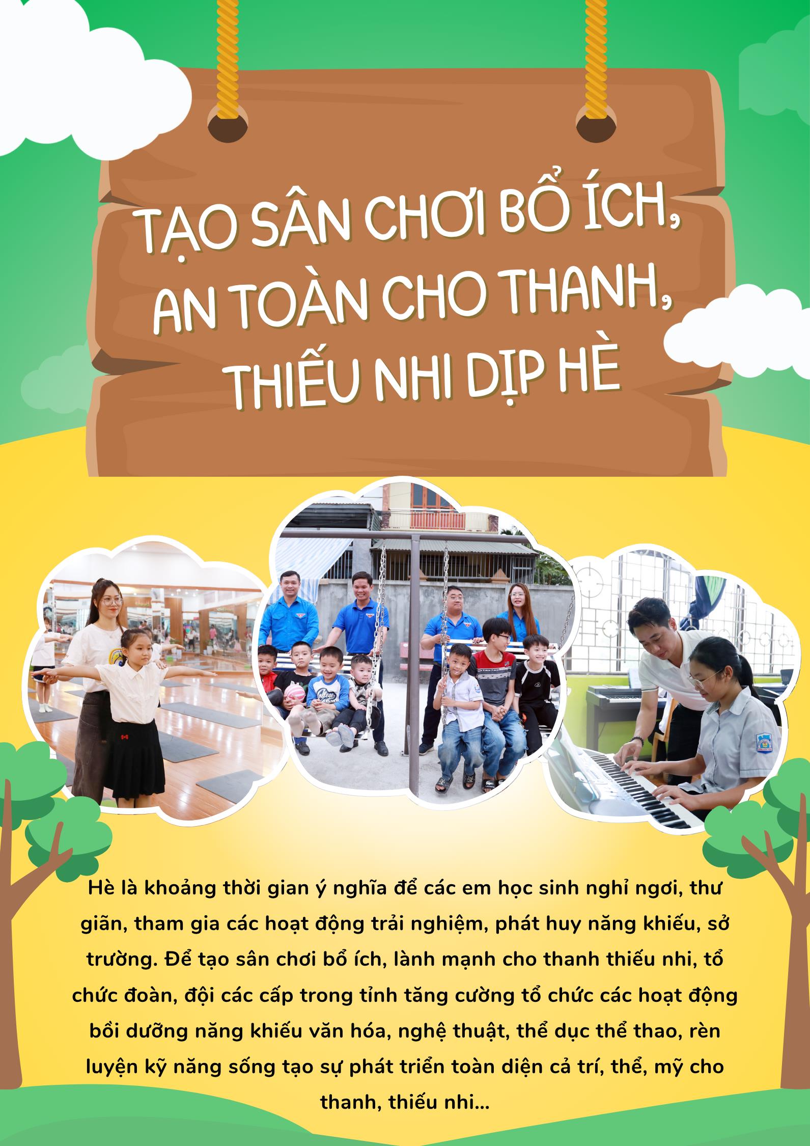 Đồng chí Vũ Trần Tùng Anh, Phó Bí thư Tỉnh đoàn, Chủ tịch Hội đồng Đội tỉnh cho biết: Năm nay, hoạt động hè được tổ chức trong bối cảnh đặc biệt, khi thực hiện sắp xếp bộ máy chính quyền 2 cấp. Để không gián đoạn hoạt động hè cho thiếu nhi, Tỉnh đoàn, Hội đồng Đội tỉnh chỉ đạo các cấp bộ đoàn phối hợp với các ngành, đoàn thể và chính quyền địa phương thực hiện tốt việc tiếp nhận, quản lý, tổ chức sinh hoạt hè cho thiếu nhi tại địa bàn dân cư và bàn giao thiếu nhi trở lại nhà trường sau dịp hè; tạo điều kiện cho trẻ em, học sinh được vui chơi, được tham gia các hoạt động văn hóa, nghệ thuật, rèn luyện thể chất, kỹ năng sống trong dịp hè.