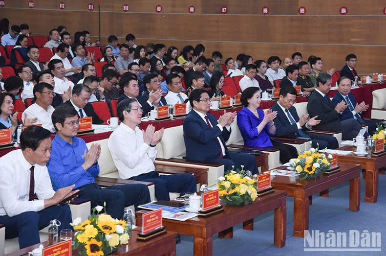 Thủ tướng nêu rõ, trong thế giới ngày nay, khoa học, công nghệ, đổi mới sáng tạo và chuyển đổi số không chỉ là yêu cầu khách quan, là xu thế tất yếu của thời đại mà còn là con đường duy nhất để bứt phá, vượt qua khó khăn, thách thức, nắm bắt thời cơ, xây dựng nền kinh tế độc lập, tự chủ, vững mạnh, xã hội văn minh, hiện đại, đưa đất nước sánh vai cùng các cường quốc trên thế giới. Nghị quyết số 57-NQ/TW của Bộ Chính trị là văn kiện có ý nghĩa đặc biệt quan trọng, là kim chỉ nam cho phát triển nhanh và bền vững, là lời hiệu triệu mạnh mẽ, kêu gọi, khích lệ, động viên toàn Đảng, toàn dân và toàn quân ta nỗ lực phấn đấu đưa đất nước vững bước tiến vào kỷ nguyên mới-kỷ nguyên phát triển giàu mạnh, văn minh, thịnh vượng của dân tộc.