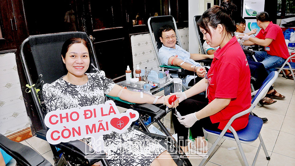 | Cán bộ, công chức Văn phòng Tỉnh ủy tích cực tham gia hiến máu nhân đạo. |