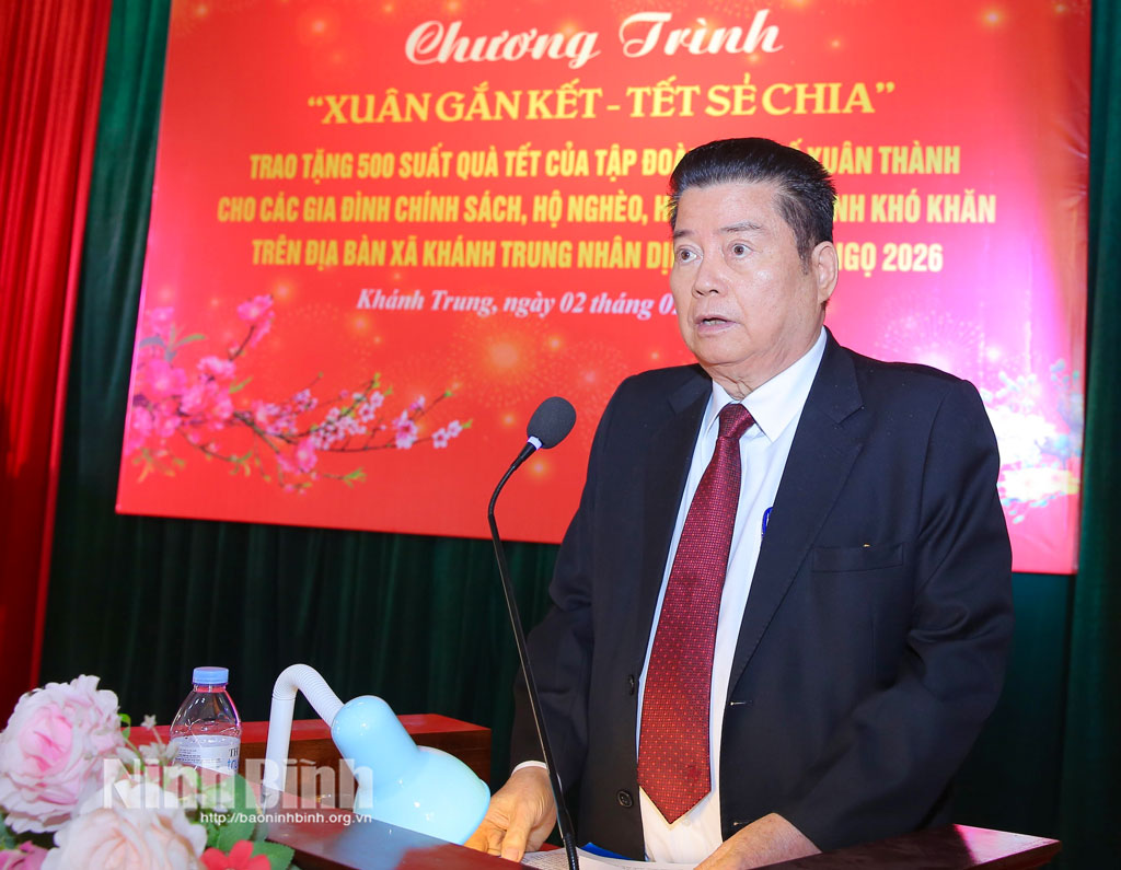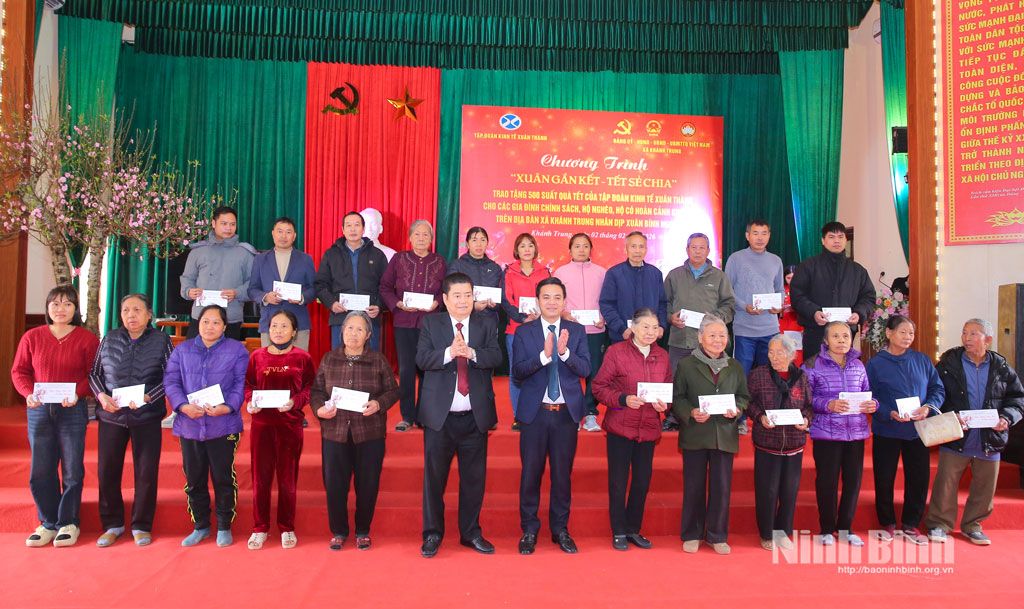 Tại chương trình, ông Nguyễn Xuân Thành, Chủ tịch Hiệp hội Doanh nghiệp tỉnh, Chủ tịch HĐQT Tập đoàn Kinh tế Xuân Thành chia sẻ: phát huy tinh thần tương thân tương ái, “Lá lành đùm lá rách” và đạo lý “Uống nước nhớ nguồn” của dân tộc Việt Nam và thể hiện lòng tri ân với các liệt sỹ, thương binh, bệnh binh, người có công với cách mạng, gia đình cách mạng đã hy sinh vì độc lập, tự do của Tổ quốc và những gia đình có hoàn cảnh khó khăn trên địa bàn xã Khánh Trung, Tập đoàn Kinh tế Xuân Thành chuẩn bị 500 suất quà (trị giá 250 triệu đồng) trao tặng các hộ gia đình chính sách, hộ gia đình có hoàn cảnh đặc biệt khó khăn, giá trị mỗi suất quà là 500 nghìn đồng. Đây là tấm lòng của doanh nghiệp, góp sức cùng cộng đồng, xã hội tri ân những người có công với cách mạng và giúp đỡ những hoàn cảnh khó khăn, đón Tết nguyên đán năm 2026 trong ấm áp, yêu thương.
